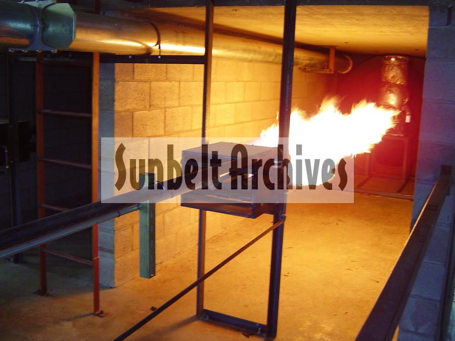 A converted jet engine used to create the heat for drying red jalapeños before smoking them to make chipotles. Shot at Chipotle, Texas.