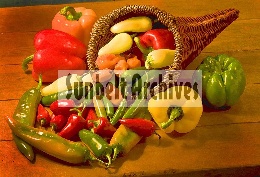 A filtered chile cornucopia illustration.